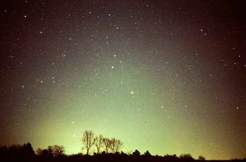 Exposure: 10 min on Kodak Ektacolor 400 color slide film